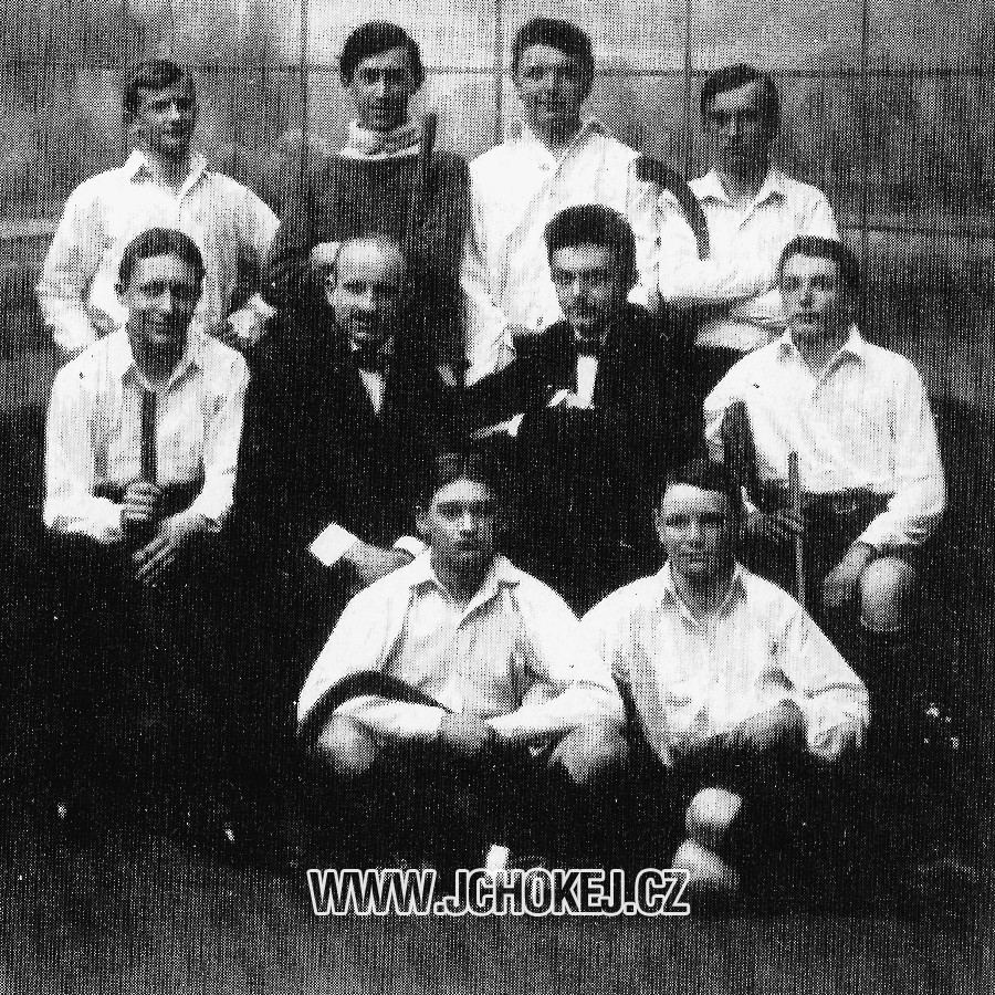 První zápas před sto léty se hrál ještě se zahnutými holemi a míčkem ve stylu bandy, ale na ledě a na bruslích. Přechod z bandy ke kanadském hokeji se časově dá těžko vymezit, neboť po určitou dobu se pořádaly dvojzápasy, kdy stejné týmy proti sobě nastoupily nejprve „postaru“ a proháněly míček, potom si daly odvetu s pukem. Po první světové válce se zrodil budějovický SK Slavoj, vznikl hokejový odbor při SK Č. B. a vlastní tým postavil také SO YMCA.