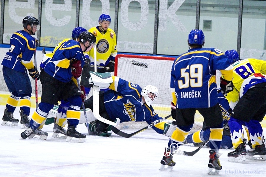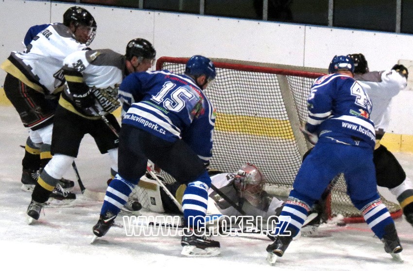 JIŽNÍ ČECHY – Premiéra v Kuki aréně pod hlubockým zámkem se domácím vydařila výsledkově i společensky. Náležitě si uctili spoluzakladatele novodobé éry tamního hokeje Petra Bělohlava. Pouze mu nevyvěsili dres, neboť by museli šplhat moc vysoko. Průběh zápasu a jeho řízení se však nelíbily hostům, kteří zaplatili čtyřmi inkasovanými góly za svá vyloučení a hodně se zlobili. Dobrou vizitku jim neudělalo extempore vedoucího mužstva při odchodu do šaten po druhé třetině. „Po prvním gólu z nás spadla nervozita, dobře jsme bruslili. Pomohla nám soupeřova nedisciplinovanost,“ hlásil kouč vítězů Miroslav Šulista. „Jsme hodně naštvaní,“ přiznal vimperský asistent Pavel Předota.