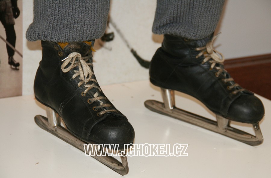 Hokejista v Jihočeském muzeu dostal do výbavy historické rukavice a hůl ze zápůjčky od Františka Eliáše z budějovické firmy Hockeyland. Za nejcennější kousek lze právem považovat originální pár bruslí s botami z roku 1934, které zapůjčila rodina legendárního budějovického hráče Slávka Aibla. Pozadí za hráčem tvoří panel vytvořený z historických fotografií. Poskytl je – až na jednu výjimku – současný prvoligový klub.