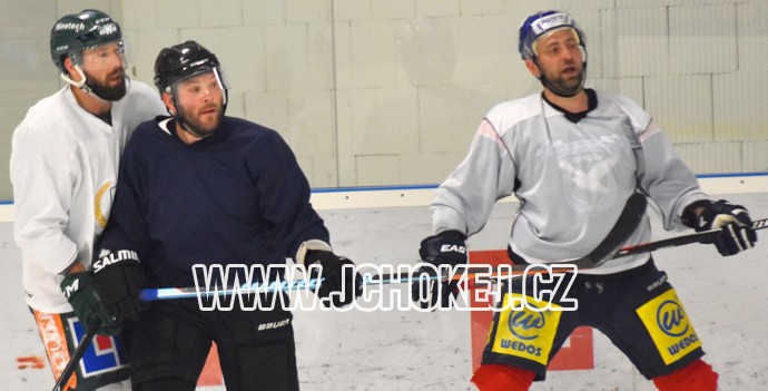 Od začátku května do konce června si naplánovali bruslařské tréninky v Hokejovém centru Pouzar. Každou středu a pátek si budějovičtí krajánci a veteráni vystřihnou společnou hodinku při intenzivním souboji dvou pětic v bílých dresech proti dvěma barevným formacím. Mixované sestavy tvoří bývalé, ale i současné opory Motoru, které se přes léto řídí individuálním plánem, a stále čiperní old boys, jejichž kompletní skupina se navíc schází každé úterý v Budvar aréně.