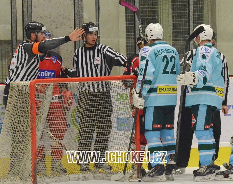 TELČ / MILEVSKO – Hrdinou duelu v Telči se stal ochránce domácího brankoviště. „Jednoznačně nejlepším hráčem na ledě byl Martin Švec, který přiváděl hostující útočníky k šílenství. Podle mých poznámek zachránil devět jasných gólů,“ hlásil předseda telčského klubu František Čermák. Mužstvo Telče uspělo v nájezdech, když se trefili obránci Jaroslav Šťastný a Roman Čermák, za hosty nikdo. „Měli jsme územní převahu a spoustu šancí. Otočili jsme na 3:2. Tým s našimi ambicemi by neměl ztratit takový zápas. Soupeř dal do hry víc srdíčka a podržel ho gólman,“ uvedl krumlovský asistent Vilém Migl ml.