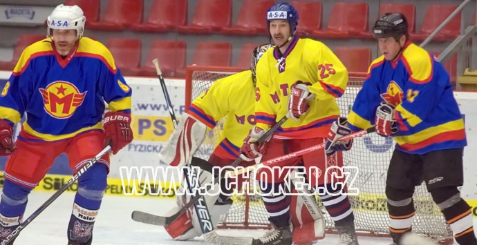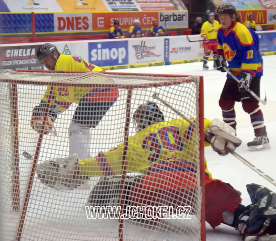 Pěkná tradice předvánočních srazů motoráckých veteránů našla pokračování v pondělí 21. prosince. Na hlavní plochu Budvar arény proti sobě vybruslily týmy Modrých a Žlutých, pohříchu v nízkém počtu, že by jim stačila jediná střídačka. Avšak během dvou poločasů naservírovaly divákům spoustu krásných kombinací, ukázek individuálních dovedností a celkem šestnáct gólů. Poté se uskutečnilo setkání generací, do něhož se zapojilo na šest desítek nositelů známých jmen.