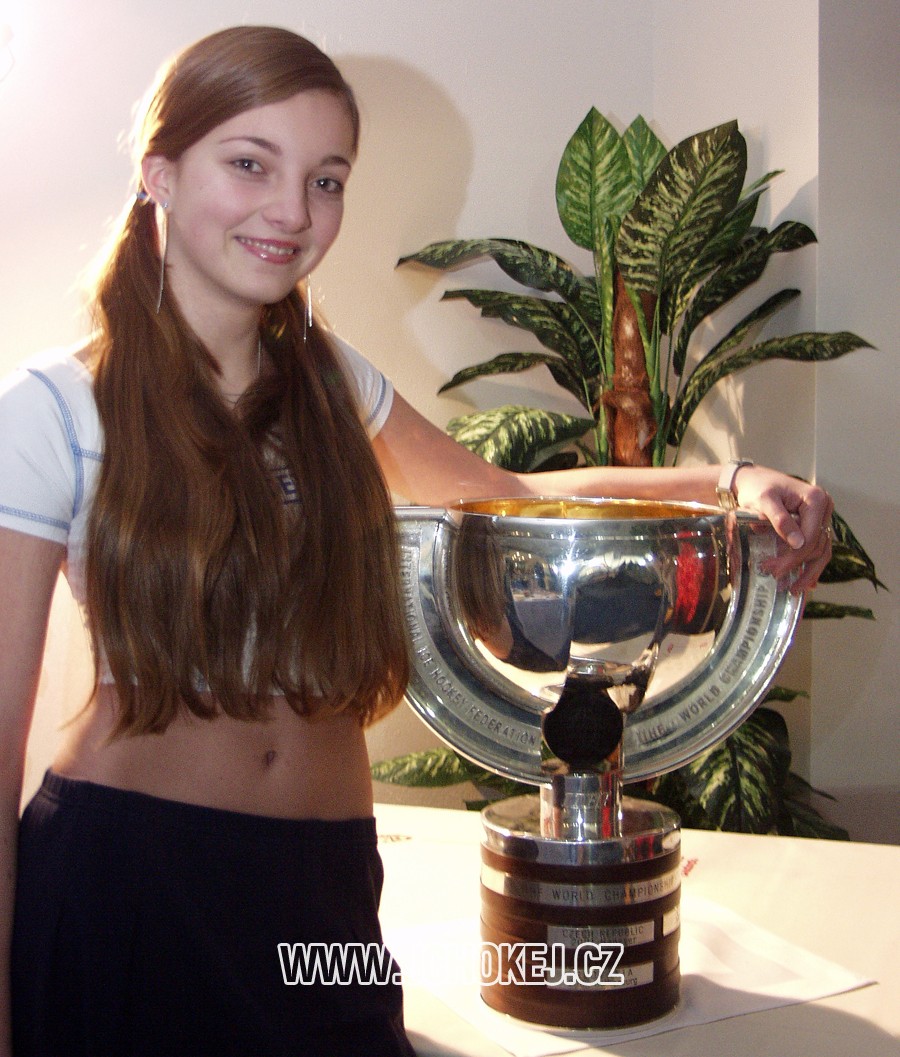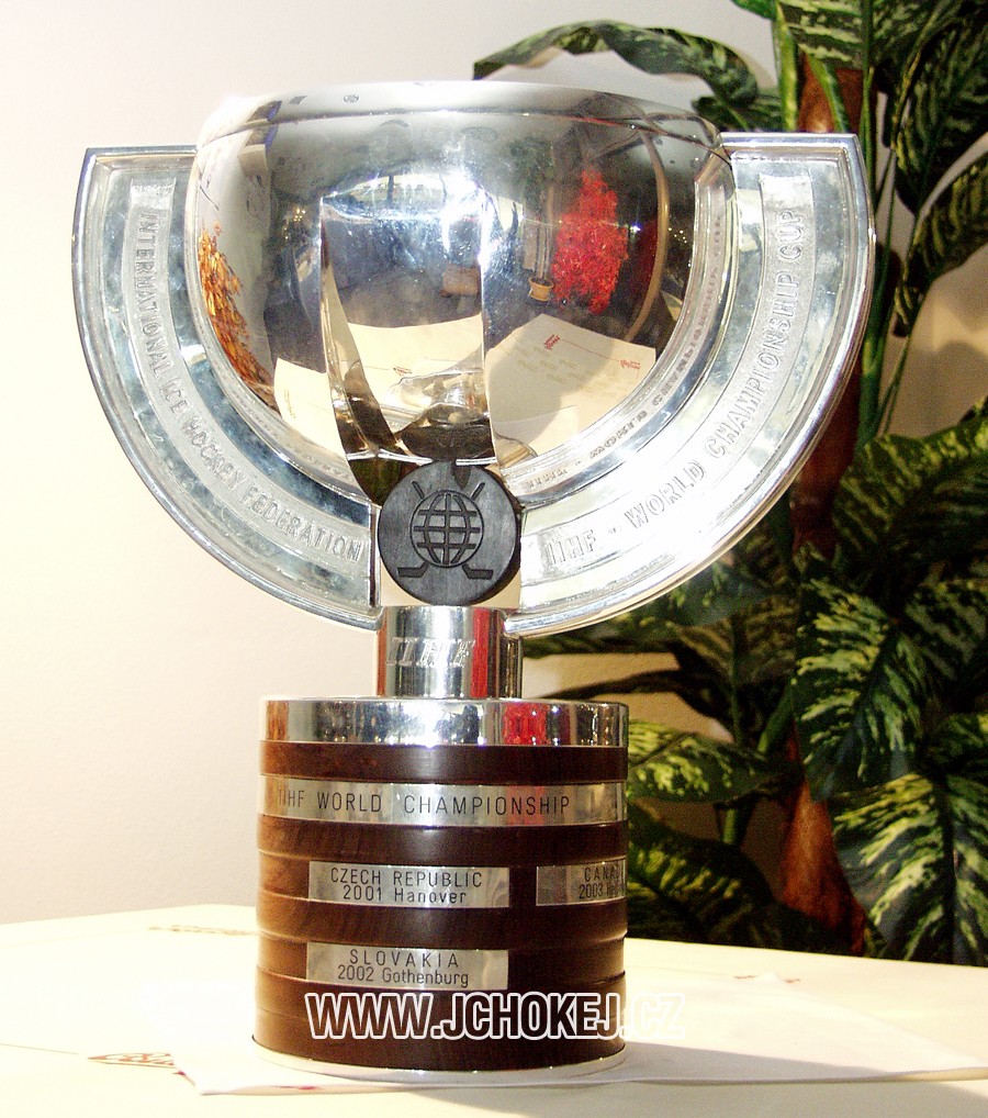 Pohár pro hokejové mistry světa putoval po extraligových stadionech již během sezony 2003 – 04 před šampionátem v Praze a Ostravě. Diváci v Budvar aréně viděli cenný předmět při utkání domácího týmu s Kladnem v neděli 28. prosince 2003. Pózovala s ním cheerleaderka Jitka Vovsová (foto pod článkem). Před dalším světovým turnajem v Česku cestuje pohár také letos a nevynechá ani stadiony 1. ligy. Ve středu 4. února 2015 bude lákat návštěvníky duelu Motor – Litoměřice. Přivezou ho maskoti Bob a Bobek.