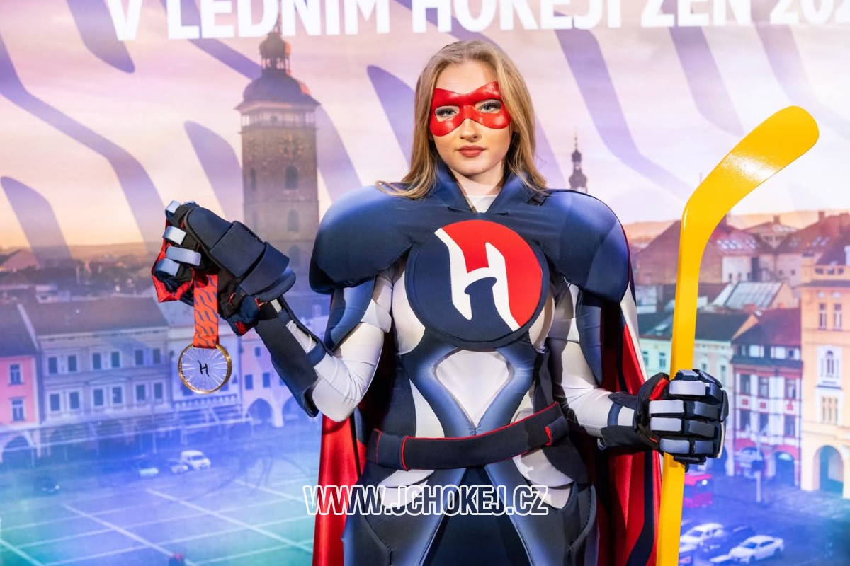 Dubnové Mistrovství světa žen v Českých Budějovicích se blíží mílovými kroky. Na tiskové konferenci k prestižní události zazněly pozitivní zprávy o přípravách, podrobnosti o maskotce Teri a odtajnila se podoba medailí. Promluvil svazový prezident Alois Hadamczik, manažerka ženské reprezentace Tereza Sadilová, viceprezident svazu Petr Bříza, generální sekretář šampionátu Jiří Šindler, autor vizuální identity Filip Kregl a autorka medailí Kateřina Handlová.