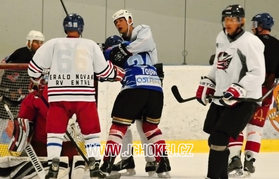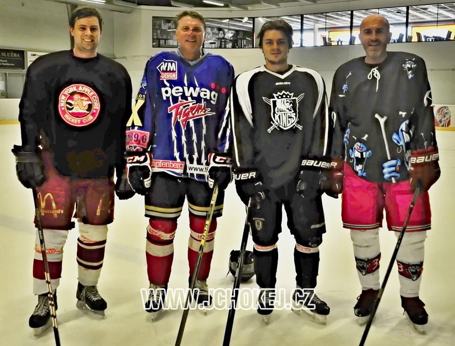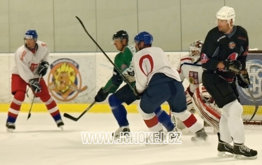 Brankáři Hájek se Zajíčkem si v polovině hrací doby vyměnili strany. Bílí chodili na led ve složení R. Bauer, M. Jáchym, P. Bláha, Vl. Sičák – V. Prospal, A. Kotalík, P. Sailer, R. Horák ml., V. Nedorost, T. Vak. Tmaví hráli v sestavě K. Ťoupal, L. Zíb, T. Prokop, J. Ťoupal – M. Gulaš, O. Ťoupal, R. Ťoupal, Fr. Mrázek, M. Hanzal, T. Jáchym. „Držet krok s těmi mladými, to je pořádná honička,“ naráží Robert Bauer na účast bratrů Jáchymovým nebo Ťoupalových a také vrcholově hrajících M. Hanzala, V. Nedorosta, R. Horáka či Gulaše.
