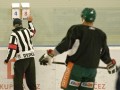 Tréninky mají jednoduchý scénář. Celou hodinu hrají proti sobě dva desetičlenné týmy pod svědomitým dozorem rozhodčího Bohumila Tomandla. V závěrečném duelu zvítězili Tmaví (černé, modré a zelené dresy) nad Bílými 12:7 a k vidění byl jako vždy svižný hokej s přihrávkami, které mají oči, kombinacemi na jeden dotek a střelbou pouze švihem, jak velí veteránská pravidla.