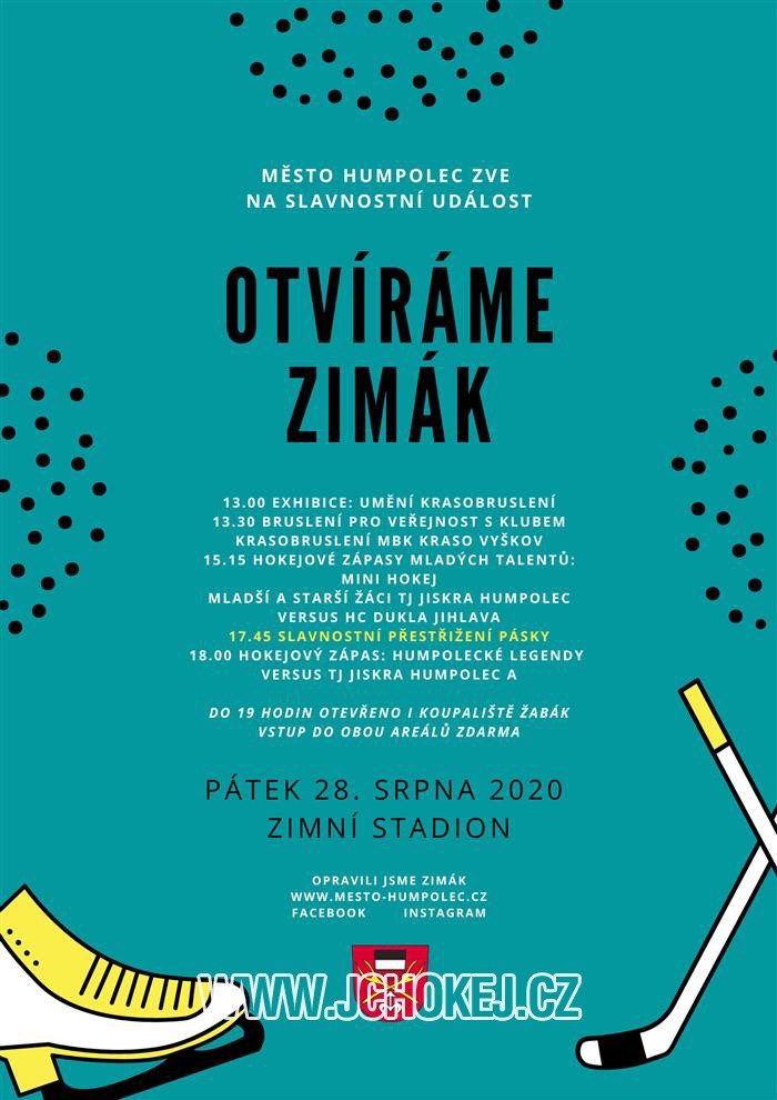 Zimní stadion v Humpolci prošel od letošního března do začátku srpna rozsáhlou rekonstrukcí za pětačtyřicet milionů korun. Vylepšený stánek hokejového klubu TJ Jiskra, jehož A-tým hraje jihočeskou Krajskou ligu, přivítal 16. srpna žákovské týmy, o den později vyzkoušela led bruslící veřejnost. V rámci slavnostního otevření 28. srpna se poměřil celek mužů s veterány.