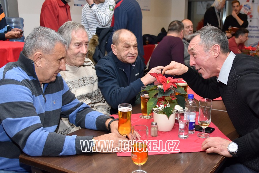 V prostorách V. I. P. se osprchovaní borci následně připojili k zástupcům několika generací od nejstarších v čele s Milánem Hönigem, Zdeňkem Kauckým či Rudolfem Houfkem přes poválečné ročníky až k hokejistům, kteří bojovali na ligových kolbištích ještě počátkem aktuálního století. Nechyběli mistři světa Jaroslav Pouzar, Roman Turek, Václav Prospal a další medailisté ze světových šampionátů a olympiád. Bezmála pět desítek bývalých motoráků i slavojáků vytvořilo jednu velkou hokejovou šatnu plnou neodmyslitelných vtípků a kulišáren, v níž zaručeně každý alespoň na chvíli zapomene na všední starosti.